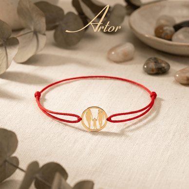 Fiecare piesă marca Artor este finisată cu măiestrie pentru a contura siluetele unite. Elementul central are dimensiunile de 17 mm x 15 mm și este fabricat din Aur Galben 585 (14K) masiv. Designul detaliat și strălucirea aurului transformă această brățară într-o amintire prețioasă, purtată zi de zi aproape de inimă. Șnurul textil rezistent, ajustabil prin noduri culisante, asigură confort și o fixare sigură pe orice încheietură.