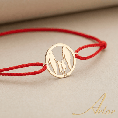 Celebrează cea mai importantă legătură din lume cu această brățară aur 14K cu șnur și pandantiv sub formă de bănuț gravat cu silueta unei familii fericite. O bijuterie plină de emoție și devotament, acest model este cadoul perfect pentru o mamă, o soție sau pentru a marca un moment definitoriu din viața voastră de familie.