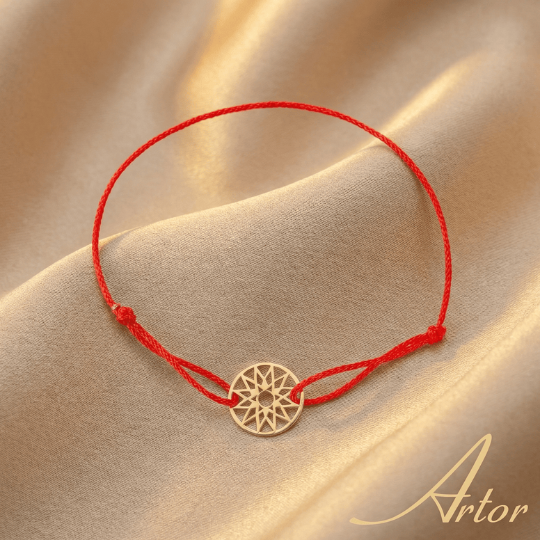 Fiecare piesă marca Artor este lucrată cu atenție pentru a surprinde detaliile petalelor și ale centrului florii. Elementul central rotund are un diametru de 13 mm și este fabricat din Aur Galben 585 (14K) masiv. Strălucirea aurului pune în valoare designul solar, transformând brățara într-un accesoriu care atrage privirile. Șnurul textil rezistent, ajustabil prin noduri culisante, asigură o fixare comodă și sigură, potrivindu-se perfect oricărei încheieturi.