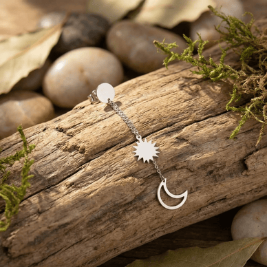 🛒 Comandă acum acești cercei lungi luna și soare din argint și bucură-te de un look asimetric spectaculos!