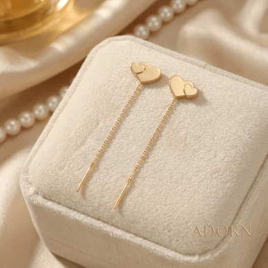 Datorită formei lor elegante și ușor alungite, acești cercei urmăresc armonios linia lobului urechii, oferind un aspect sofisticat. Sunt alegerea ideală pentru a completa o ținută office rafinată sau pentru a adăuga o notă de tandrețe unui look casual-chic de zi. Pentru un set complet plin de însemnătate, îi poți asocia cu o brățară cu inimi din aur 14K sau îi poți purta lângă o pereche de cercei stud inima mică pentru un stil modern de tip "ear stack".