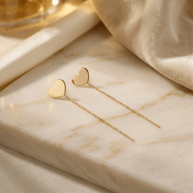 Realizați manual din Aur Galben 585 (14K), cerceii impresionează prin elementul central generos, o inimă cu dimensiunile de 9 x 8 mm, simbolul suprem al afecțiunii. Lungimea totală de 6 cm este studiată ergonomic pentru a flata linia maxilarului și a alungi vizual gâtul, oferind acea alură de „high-fashion” potrivită oricărei fizionomii. Sistemul de prindere tip threader (prin glisare) elimină disconfortul închizătorilor clasice, fiind atât de ușori încât vei uita că îi porți, deși strălucirea lor va fi imposibil de ignorat.
