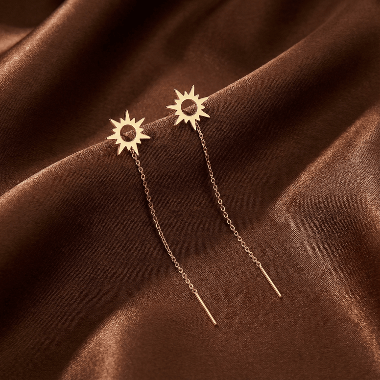 Iluminează-ți chipul și adaugă o rază de energie stilului tău cu acești cercei aur 14K threader, decorați cu un soare radiant. O bijuterie plină de simbolism solar, acești cercei sunt creați pentru femeia care iubește accesoriile ce emană optimism și vitalitate, oferind o strălucire spectaculoasă care te va acompania de la răsărit până la apus.
