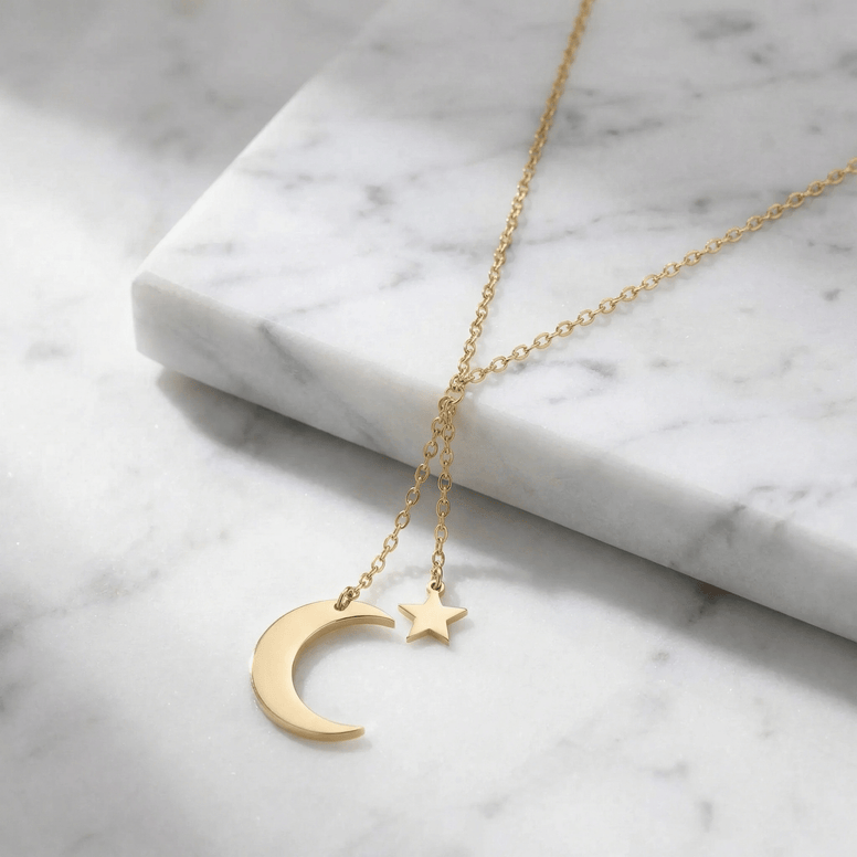 Descoperă povestea magică a cerului în bijuteriile noastre cu "Lănțișor cu Lună și Stea ".